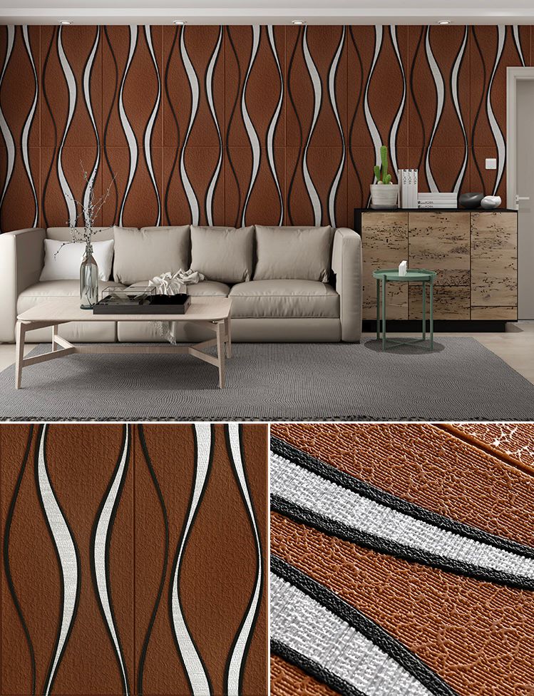 Set 5 x Tapet 3D Autoadeziv cu model maro cu dungi albe, 77 cm x 70 cm x 6mm