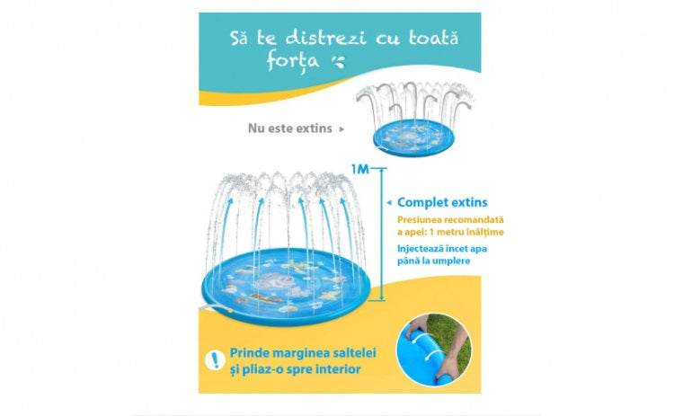 Mai multa distractie: salteaua cu jeturi de apa are un diametru de 170cm, fiind potrivita pentru pana la 4 persoane, astfel te poti bucura de distractie alaturi de copiii tai. Jeturile de apa au o inaltime reglabila, pentru a va oferi mai mult confort.