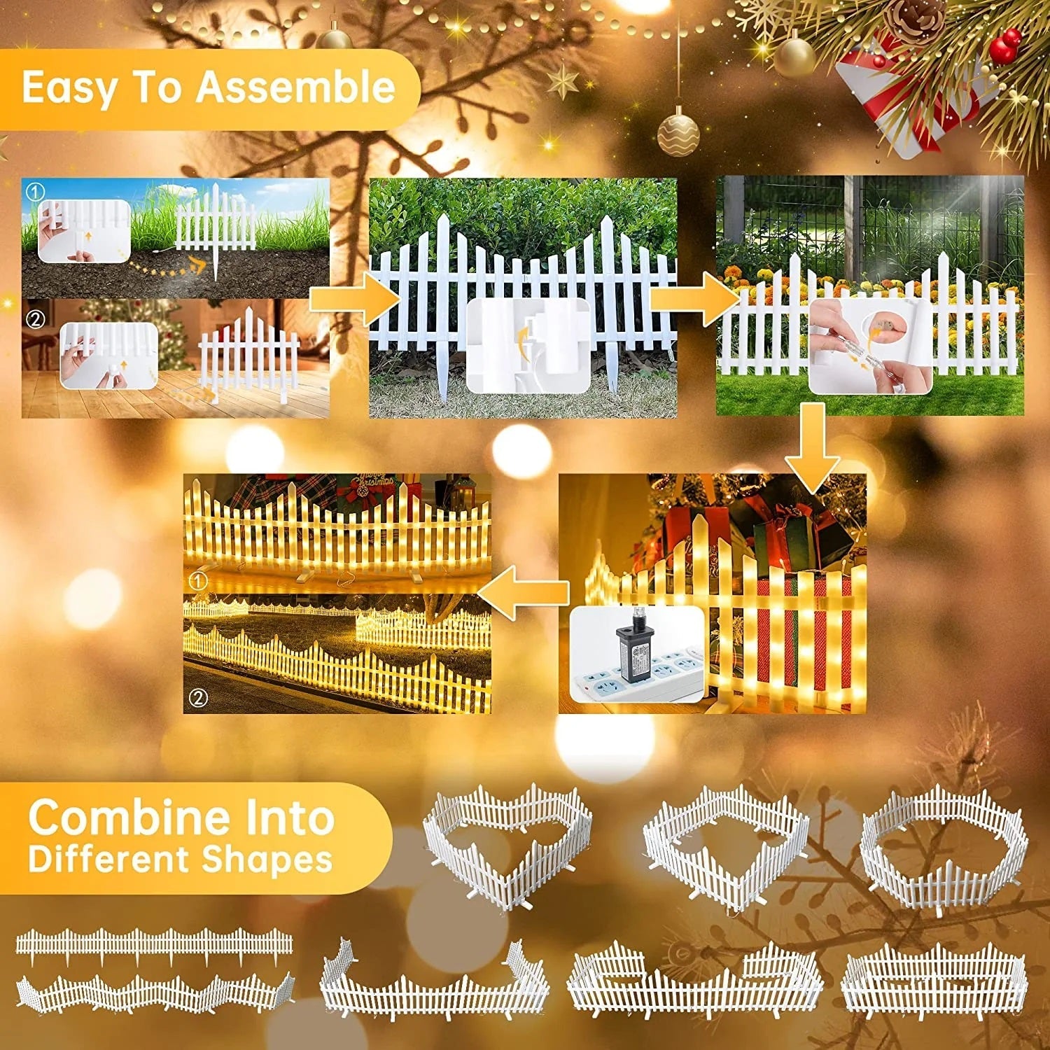 Setul contine 8 pachete de 36 LED-uri pentru gard de gradina iluminat, 35 x 28.3cm, lumini pentru brad de Craciun, conectate la priza, margini din plastic alb, gard decorativ pentru peisaj, curte, curte, casa, Craciun,