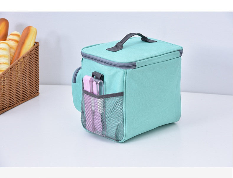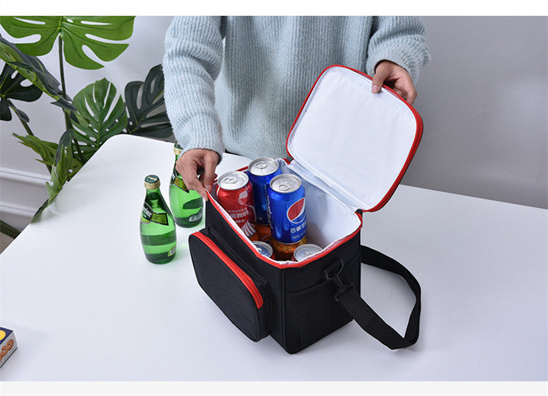 Geanta termo-izolanta pastreaza alimentele reci timp de 6 pana la 8 ore. Captuseala termoizolanta de la interior va mentine temperatura constanta (rece sau cald) a recipientelor sau alimentelor din interiorul sau, timp indelungat. Este utila si pe perioada zilelor de vara toride, putand fi luata si pe plaja. Este practica si compacta, potrivindu-se perfect in masina, ghiozdan sau pe bicicleta. Este confectionata din poliester rezistent si prevazuta cu fermoare solide.