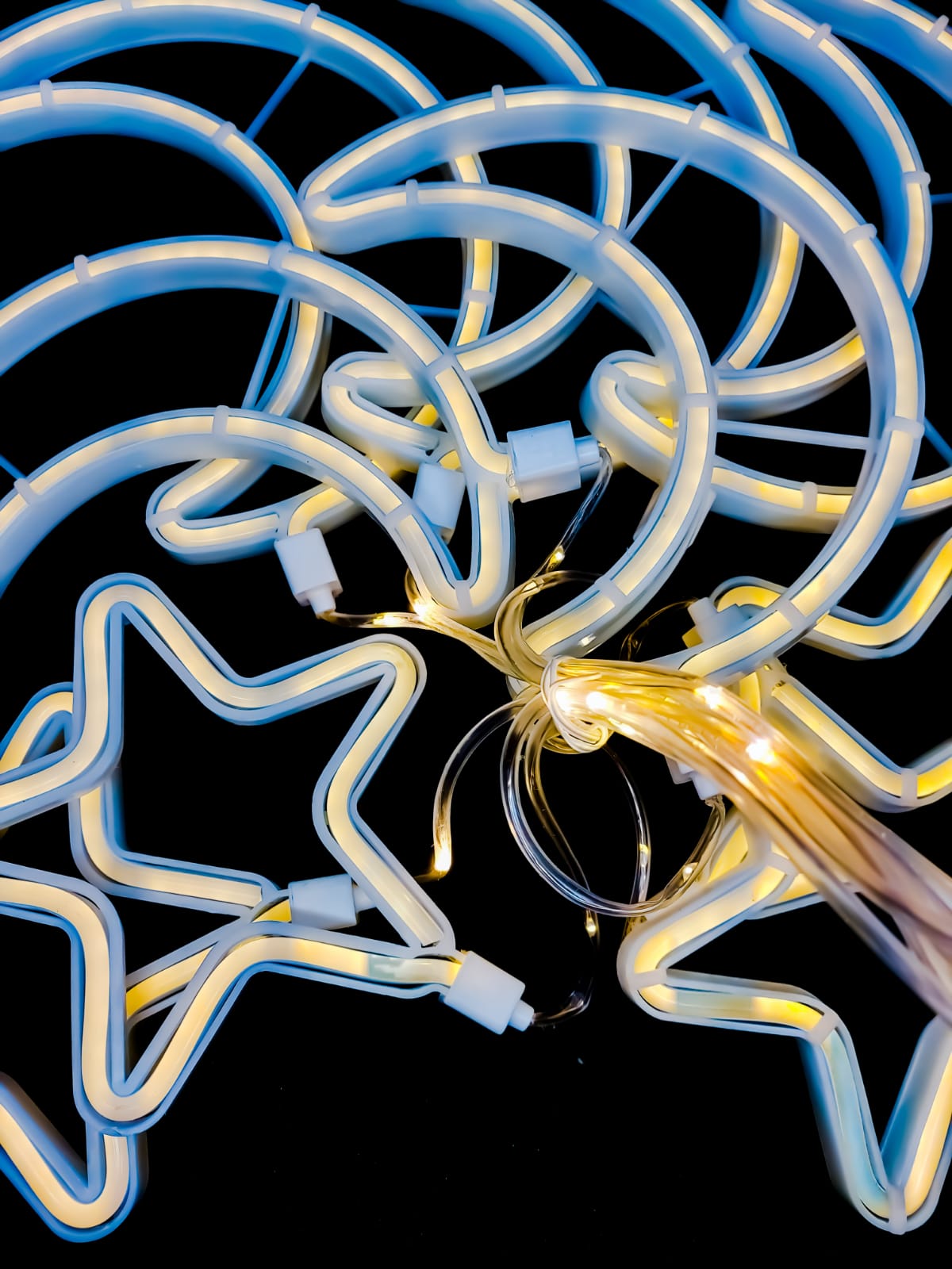 Instalatie Craciun - perdea luminoasa stele si luna 3 METRI, Alb-Cald, Interior - Exterior