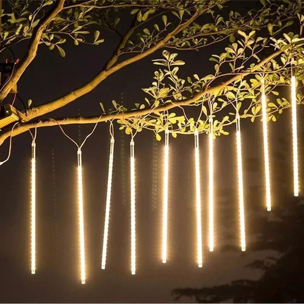 Instalatie pentru Craciun de Exterior 3m lungime - 8 Turturi 50 cm - Meteorit - Alb Cald