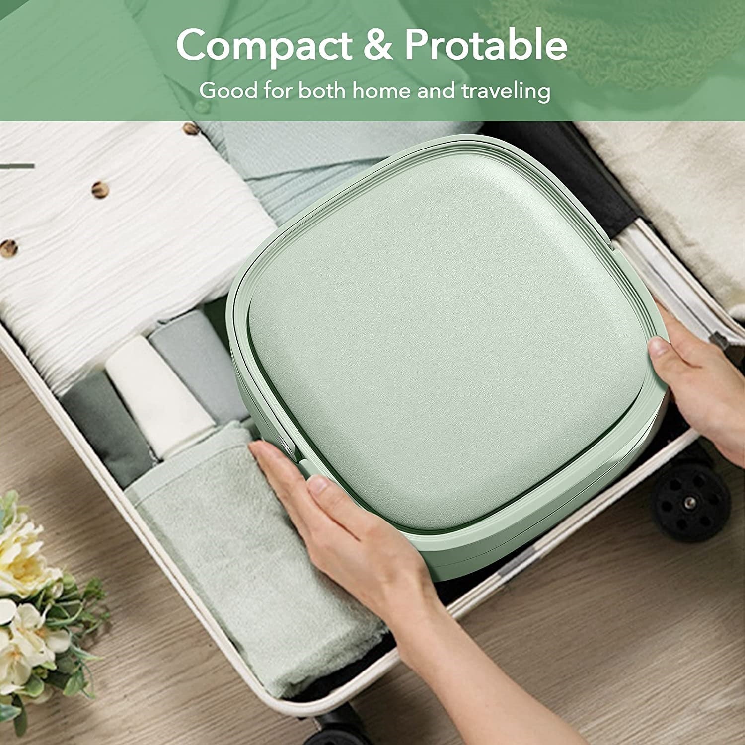 Masina de spalat portabila te ajuta ai grija de rufele murdare oriunde te-ai afla! Are o capacitate de pana la 1,5 kg si este ideala pentru hainele bebelusilor, tricouri si lenjerie de corp. Timpul de spalare poate fi setat intre 5 si 15 minute, reprezentand o solutie rapida si usoara atunci cand spatiul este limitat. Perfect pentru calatorii, rulote, camine studentesti sau pentru case mai mici.