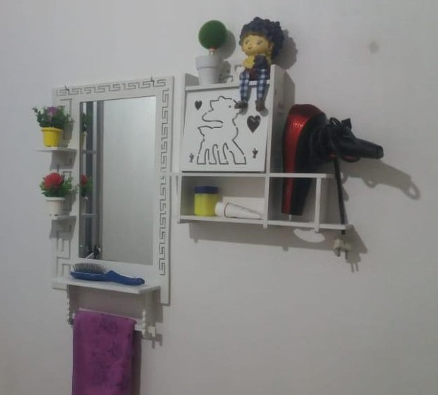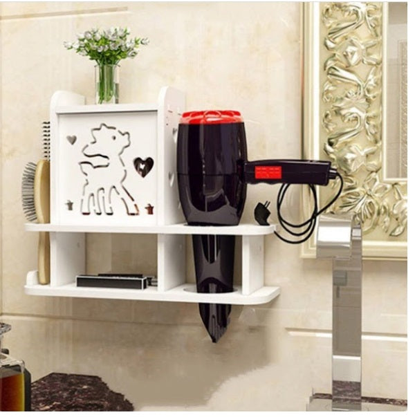 Raft de perete cu suport pentru uscator de par, 35x12 cm, Alb