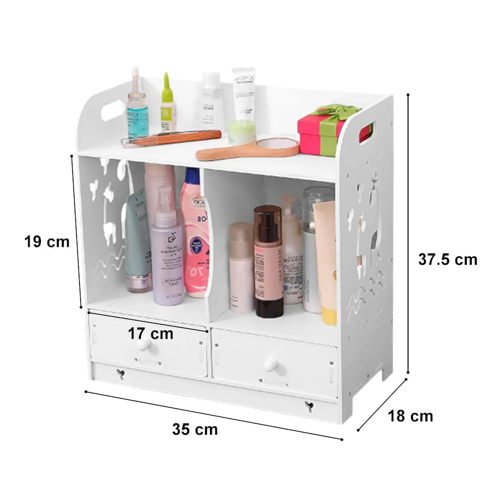 Cu dimensiunile de 35 x 18 cm, acest raft ofera un spatiu suficient pentru a depozita o gama variata de produse cosmetice, inclusiv machiaj, creme, parfumuri si altele.