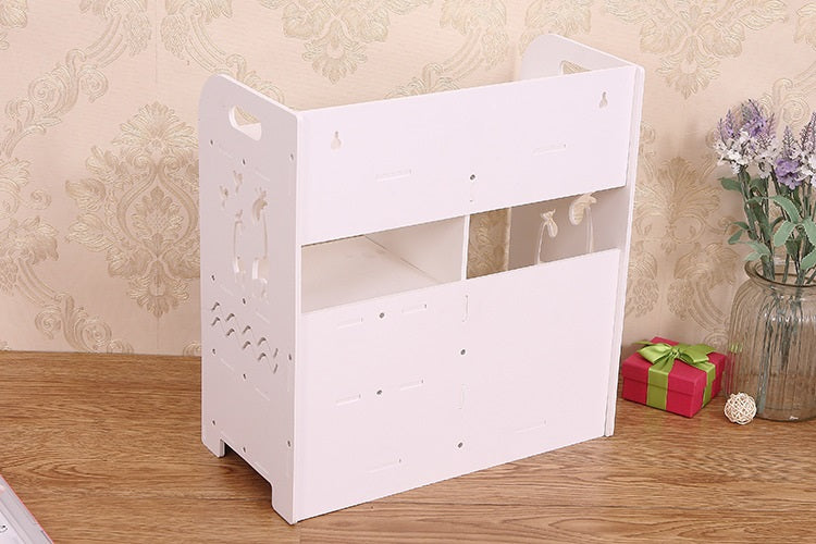 Raftul organizator de depozitare pentru produse cosmetice cu model PVC, cu dimensiunile de 35 x 18 cm, este un produs util si practic, proiectat pentru a va ajuta sa va organizati produsele cosmetice si sa le aveti la indemana.