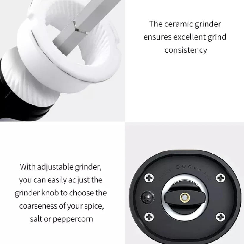 Poti macina condimentele rapid si eficient, prin simpla apasare a unui buton.