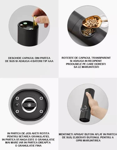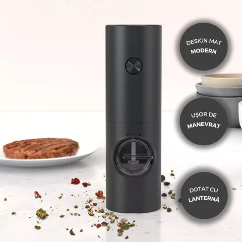 Rasnita Electrica este ideala pentru a macina sare, piper, chimen si alte condimente.