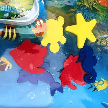 Captuseala saltelei raspunde la presiunea mainilor si a picioarelor prin miscarea apei si a animalelor acvatice, promovand astfel dezvoltarea coordonarii ochi-mana, a concentrarii si a muschilor spatelui, picioarelor, bratelor si gatului! Pur si simplu umflati captuseala cu aer si apa dupa bunul plac, asezati-o pe podea si distractia nesfarsita poate incepe! Salteaua este, de asemenea, un cadou minunat pentru toti copiii de la 3 luni in sus.