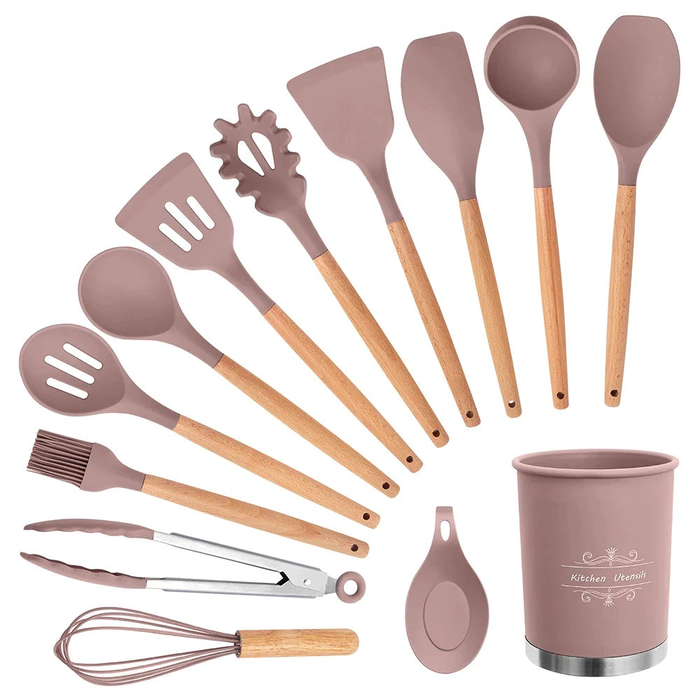 Setul include 12 ustensile diverse, cum ar fi linguri, spatule, paie, teluri, perii si altele. Acestea acopera o gama larga de activitati de bucatarie, de la amestecarea si gatitul la servire si decorare.