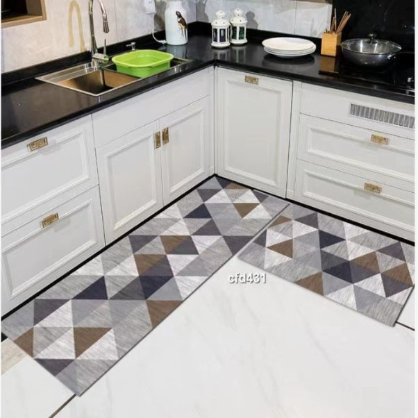 Dimensiunile diferite ale covoarelor din set sunt concepute pentru a se potrivi perfect în fața chiuvetei, aragazului sau a insulei de bucătărie, oferind un confort sporit în timpul activităților zilnice. Aceste covoare sunt ușor de curățat, fie prin aspirare, fie prin spălare manuală, menținându-și aspectul impecabil pe termen lung.