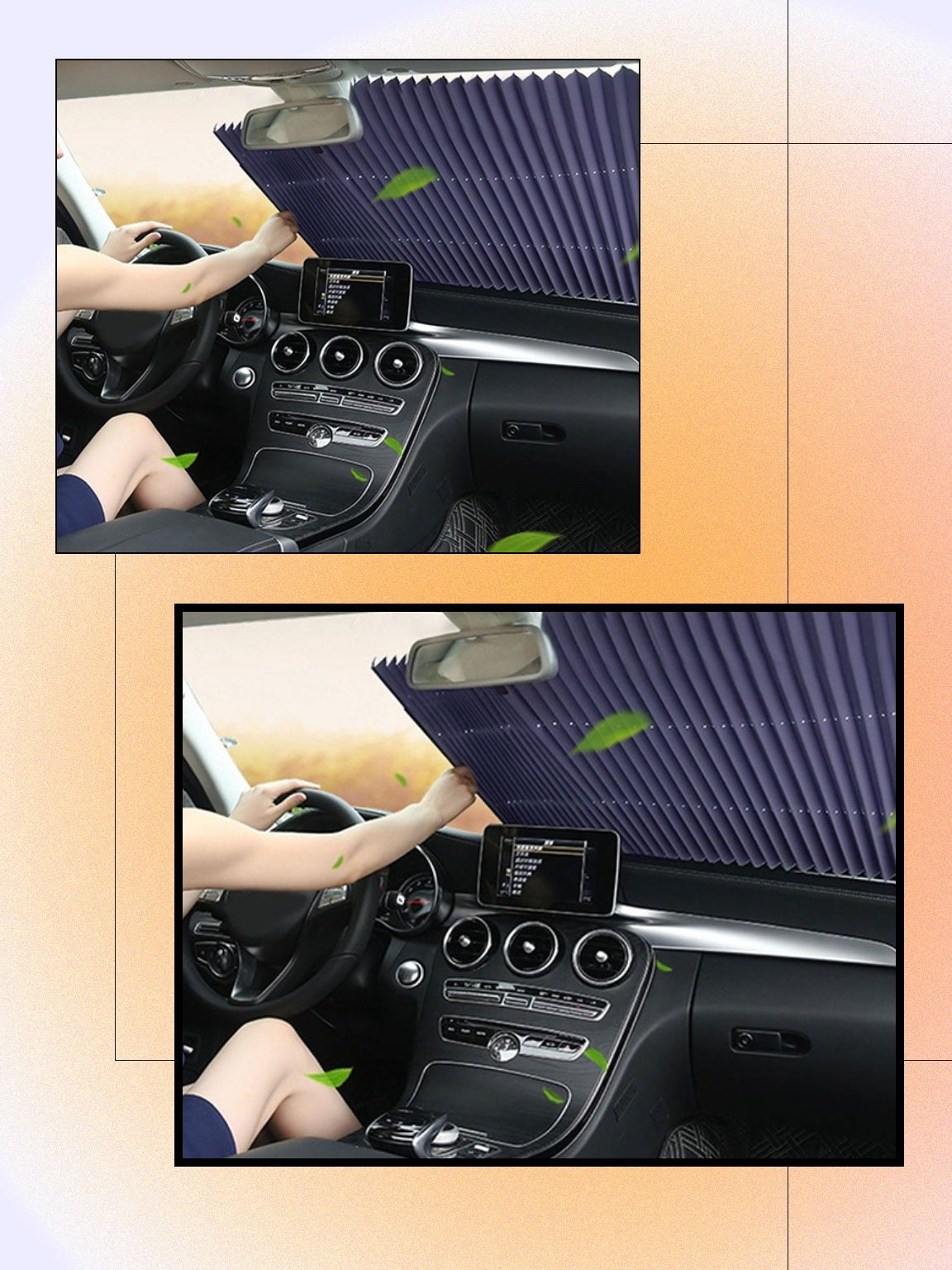 Această copertină parasolară nu protejează doar împotriva radiațiilor solare în timpul verii, ci poate fi folosită și în sezoanele mai reci pentru a preveni formarea gheții și înghețarea parbrizului în timpul iernii.