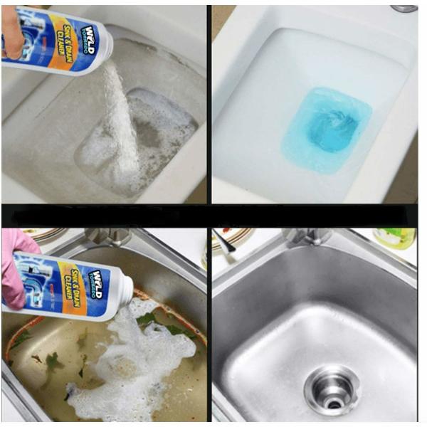 Adaugati produsul in functie de volumul de murdarie ce trebuie dizolvat (pentru acumulare de alimente adaugati 40 de grame de produs, iar pentru desfundarea toaletei sau a tevilor principale adaugati chiar si 200 de grame de produs). Dupa care lasati 5 minute ca produsul sa actioneze si apoi clatiti din abundenta cu apa curata. Daca blocajul este foarte mare, recomandam clatirea cu apa fierbinte.