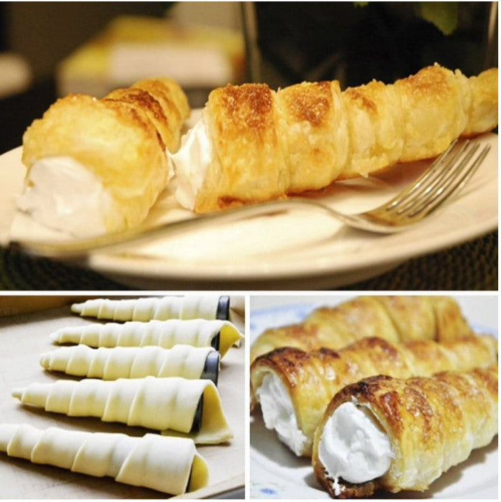 Setul de 6 forme conice pentru rulouri de patiserie este un instrument util și practic pentru bucătăria ta, permițându-ți să prepari rulouri de patiserie delicioase și atrăgătoare într-un mod ușor și eficient.