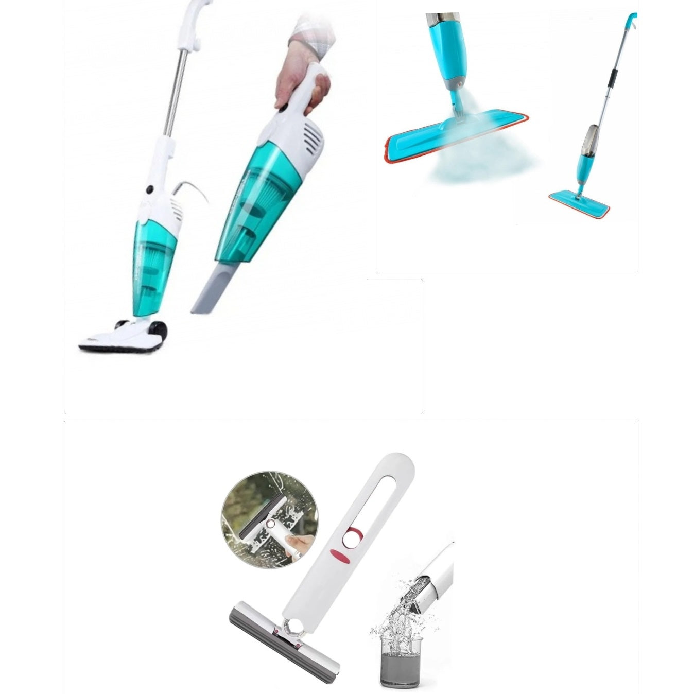 Set Complet pentru Curatenie: Aspirator 2 in 1 cu Filtru Hepa + Mop cu Rezervor + Dispozitiv pentru Spalat Geamuri