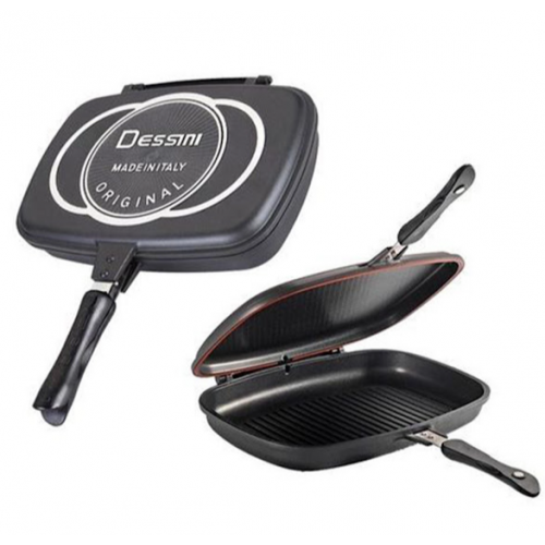 Tigaia grill dubla este fabricata din aluminiu turnat si 3 straturi de granit antiaderent.