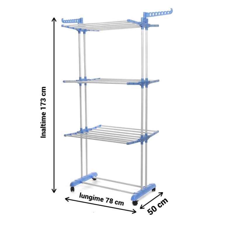 Uscătorul mobil și pliabil cu 3 nivele de uscare este proiectat pentru a avea dimensiuni compacte, dar în același timp poate să ofere o capacitate generoasă pentru uscarea hainelor.